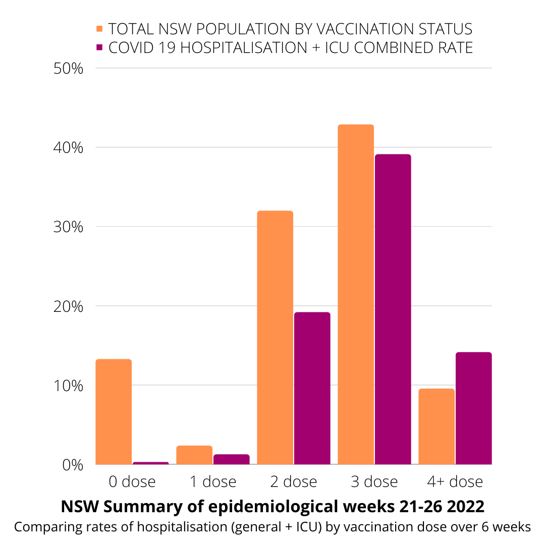 In 6 weeks of NSW data we cannot claim evidence that the statement get vaccinated to ease the burden on the healthcare system is untrue everywhere and all the time, but it does demonstrate that it is untrue in NSW over the past 6 weeks.