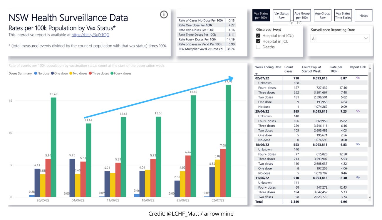 Not only does it appear that the vaccines have failed to prevent severe illness in the NSW population over this time, they are inversely correlated with poor outcomes as the doses increase. NSW hospitals are jammed with 3 and 4+ dose recipients. This should pique the interest of journalists all over the country.