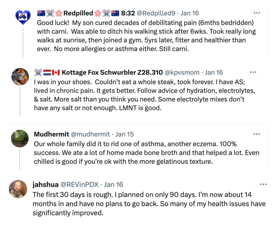 While commenters on X were very vocal about how carnivore is the best, or the worst, diet of all, my personal experience underscores why most of us, despite our personal differences, are united around the value of health freedom: all bodies are different and there is no one-plan-fits-all for diet or medicine.
