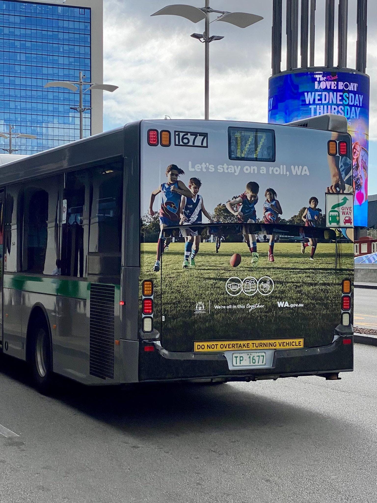 This ad, part of a series in WA Gov’s “Let’s stay on a roll” campaign, promotes the holy trinity of WA’s public health strategy: Vaccination, Masking, and Hand Hygiene.