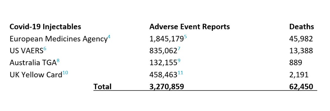 Safety concerns of Covid vaccines.“To date, no other drugs in human history have reported more deaths, illnesses, injuries, and disabilities, which number as follows (to 28 June 2022)”: