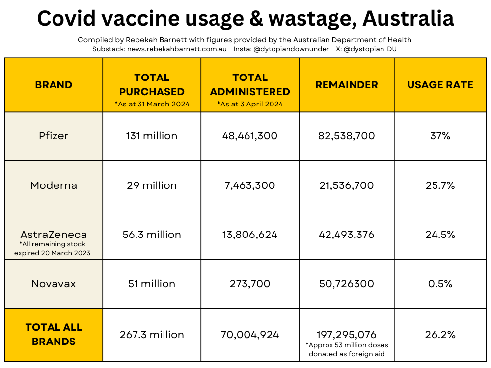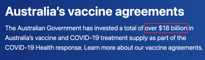 As part of its pandemic response, the Australian government purchased 267.3 million doses of Covid vaccines, enough to vaccinate Australia’s population of approximately 26 million people ten times over.