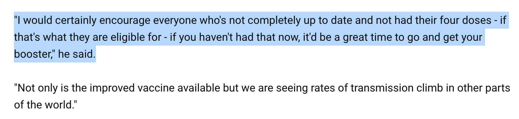 In the meantime, Australian health officials are still laboring at increasing uptake of the third shot. This tweet from the president of the Australian Medical Association was posted just today: