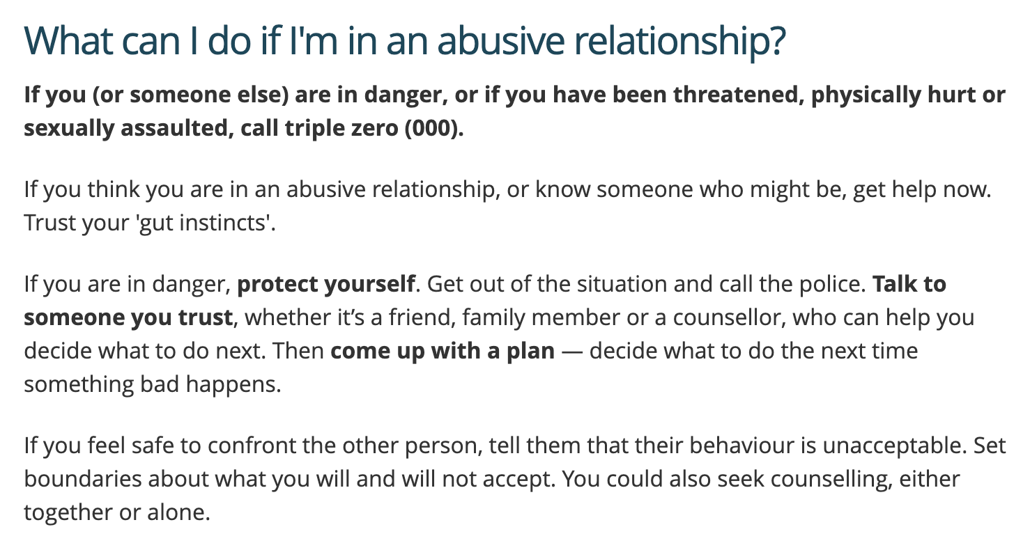 The Australian government says that if you’re in abusive relationship, you should get help (read their advice HERE).