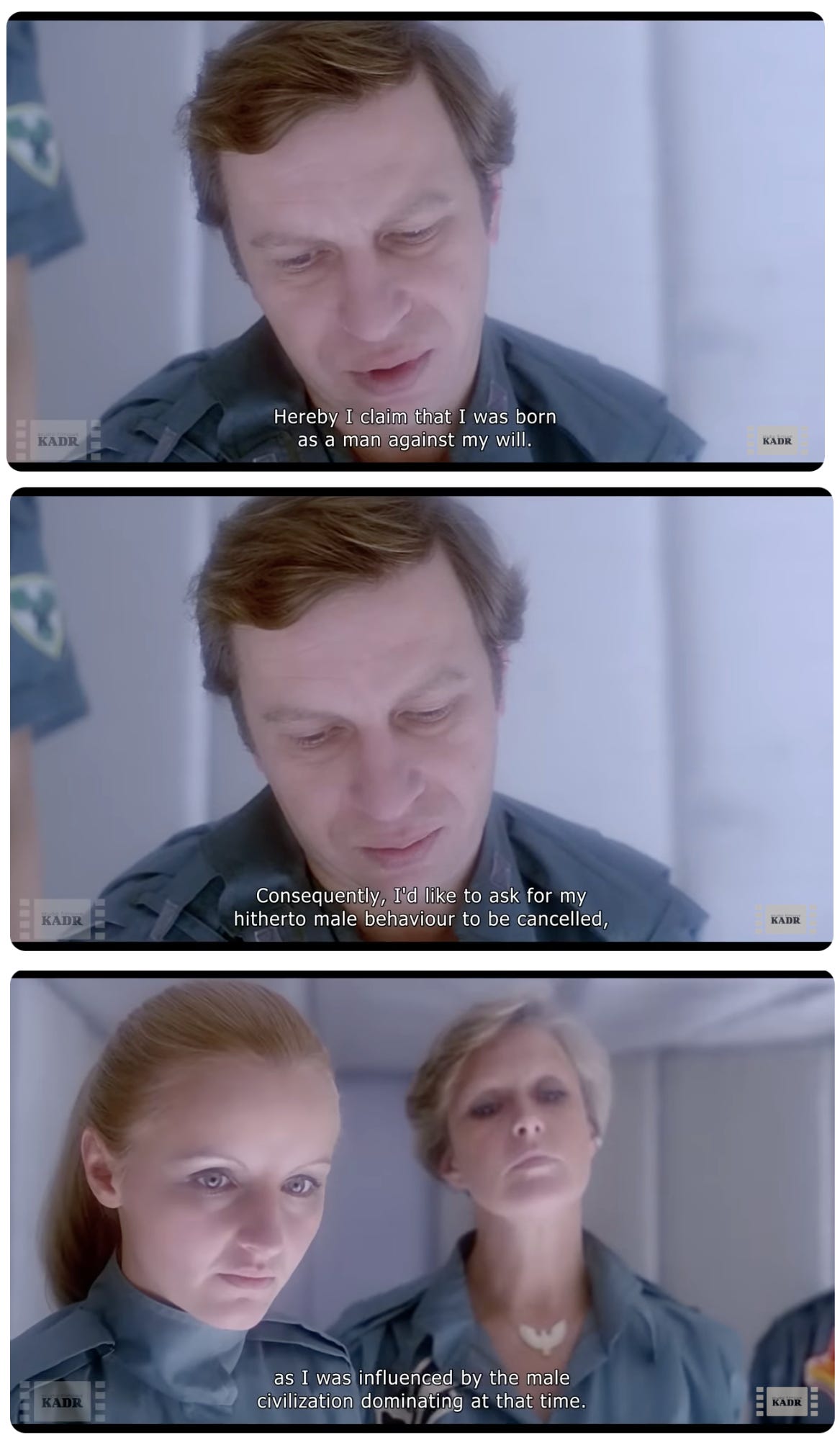 Upon discovering the awakened men, the women try to get the men to sign a waiver claiming they were born men against their will, and asking for their male behaviour to be cancelled. When the men refuse to sign, the women vote to force the men to undergo sex reassignment surgery. Don’t worry, they escape in the end!