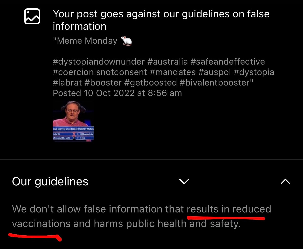 Instagram guidelines specifically state that censorship is intended to protect market demand for Covid vaccines.