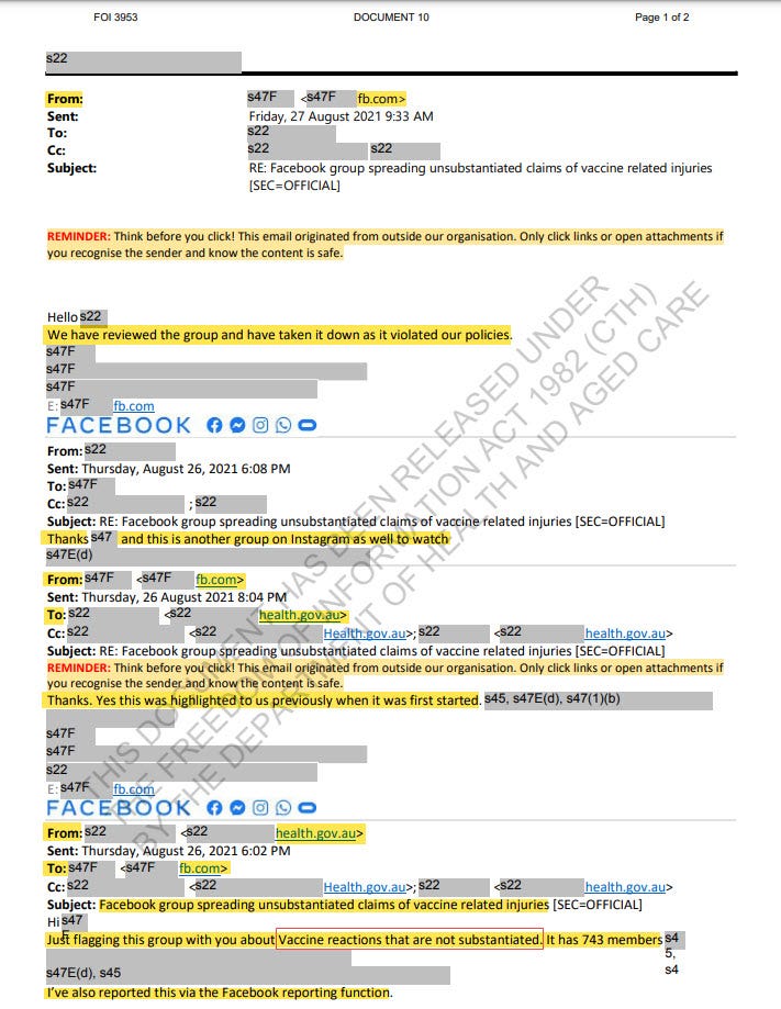Earlier this year, another release of FOI documents3 revealed that the DOH had emailed Facebook to flag a group that was sharing, “vaccine reactions that are not substantiated.” Facebook responded that it had taken down the group.