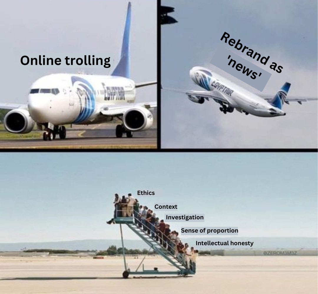 1. Find a social media post trolling your article subjects and use this troll’s speech to frame your whole article under the guise of ‘news reporting.’