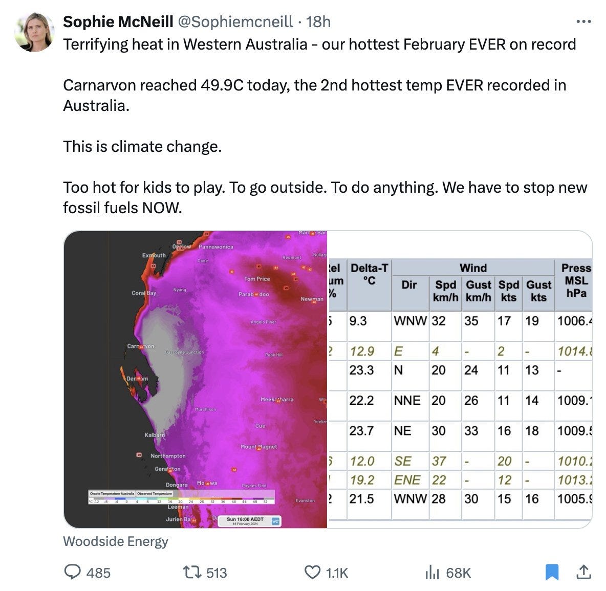 (FYI Sophie McNeill’s claim that this was the hottest February ever on record was contested in this thread).