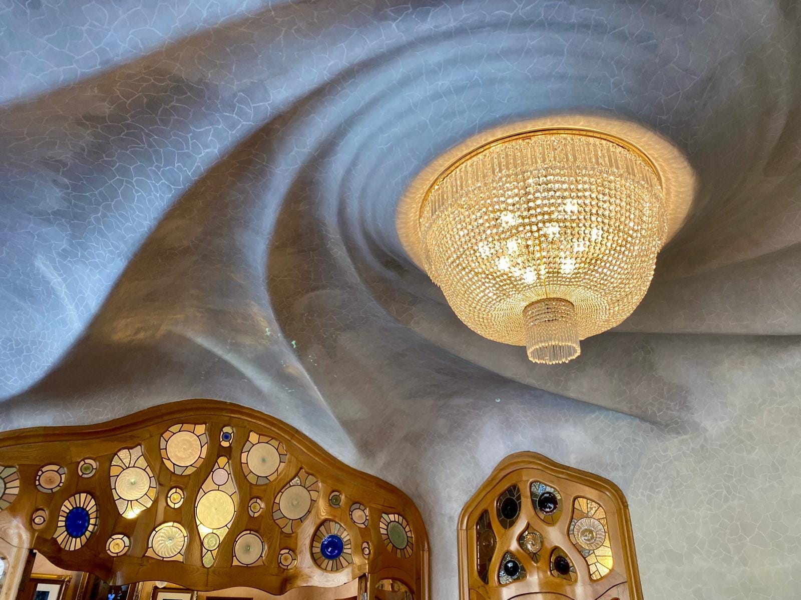 My highlight so far has been visiting Gaudi masterpiece, Casa Batlló, which Gaudi renovated between 1904-1906 for the Batlló family. The attention to detail is out of this world. Below is a swirled ceiling feature from the main living area.