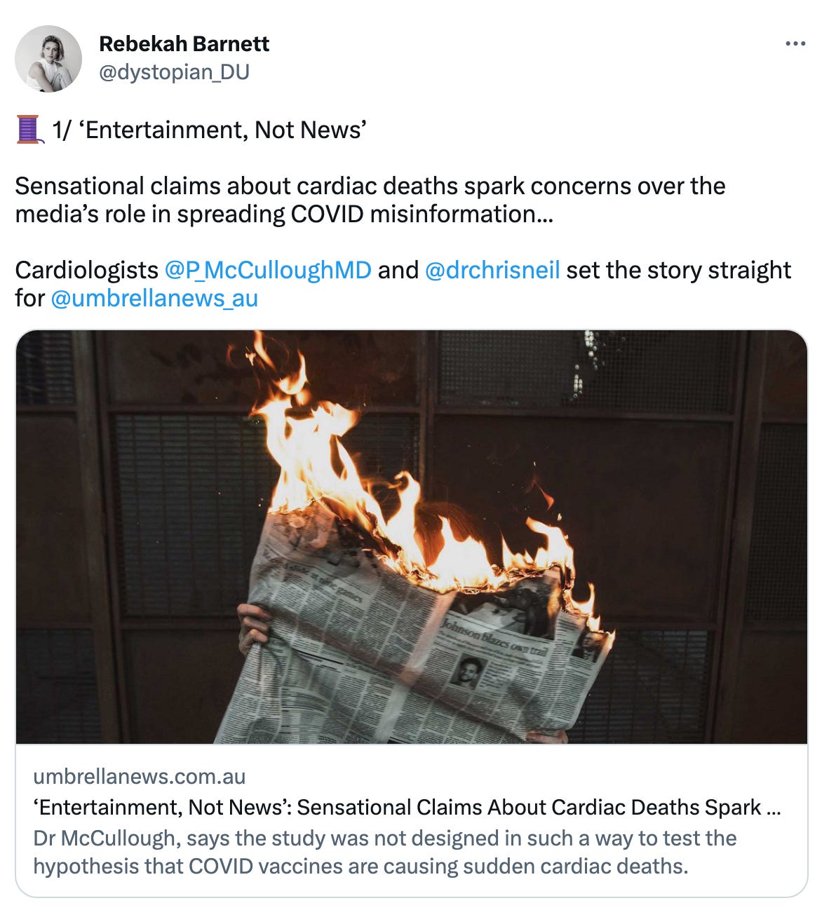 I spoke with cardiologists Dr Peter McCullough and Dr Chris Neil to set the story straight. Professor Gigi Foster also chimes in with insightful commentary on the role the mainstream media plays in spreading Covid misinformation.