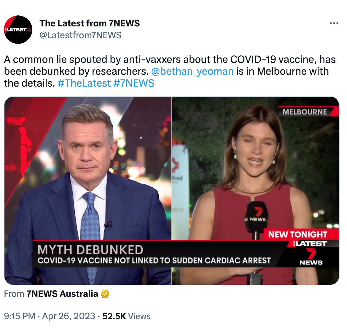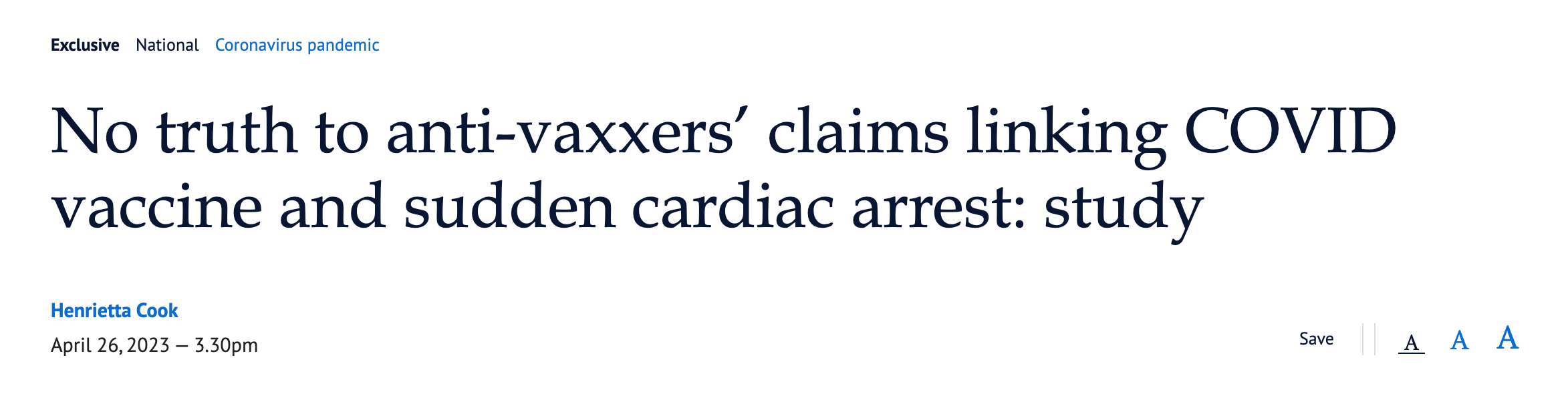 The 7 News coverage was particularly incoherent, with reporter Bethan Yeoman claiming in one breath that cardiac arrests had not increased, following on in the next with the claim that Covid vaccines cause an increase in cardiac arrests. Ok Bethan.