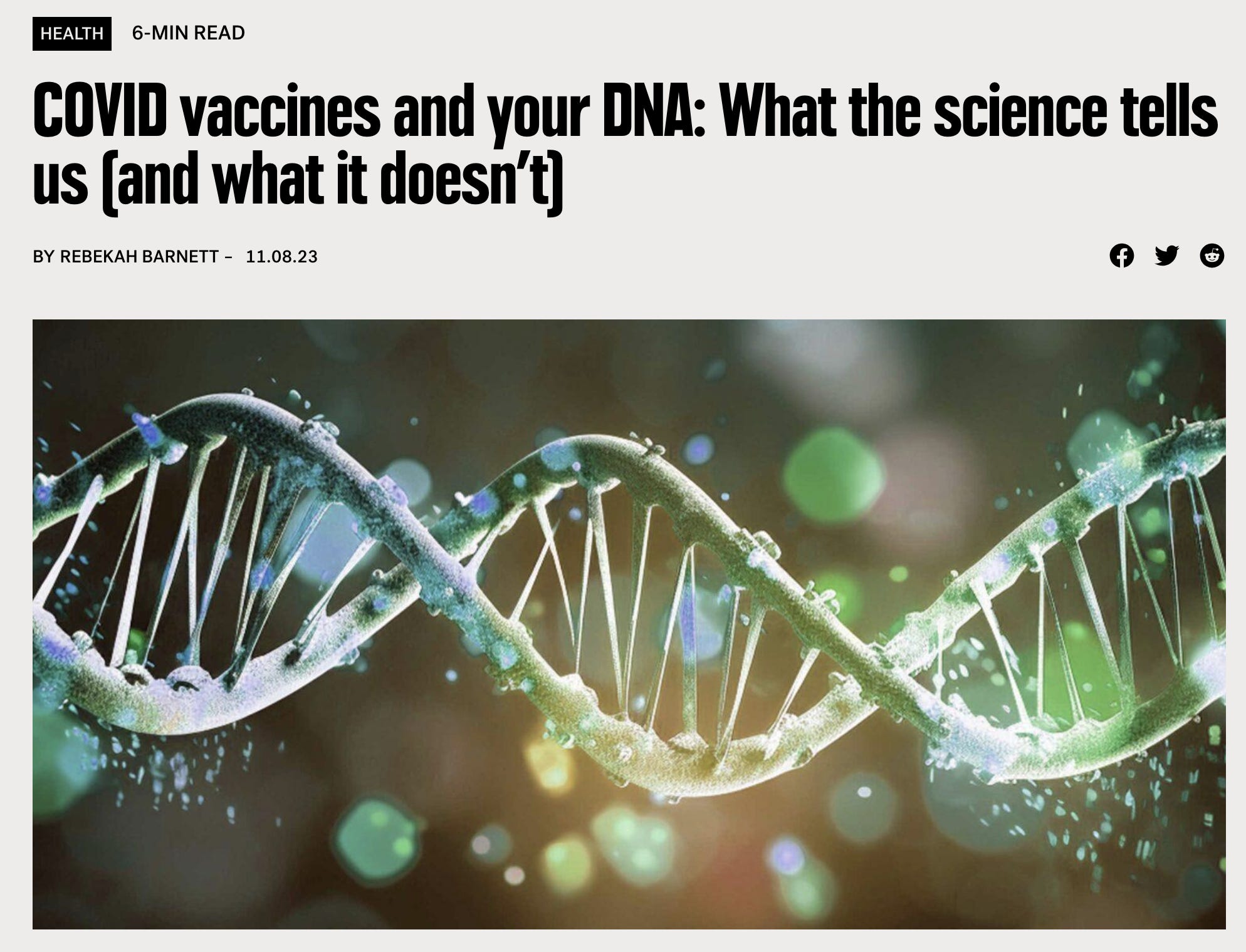 For a shorter, narrative format, revisit my article COVID vaccines and your DNA: What the science tells us (and what it doesn’t), published at Umbrella News in August.