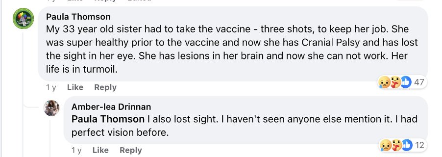 In the comments section, readers have listed personal testimonies of injuries and deaths occurring with temporal nearness to vaccination, of which multiple commentors said they had not reported, and/or had not sought compensation. Similar comments were found under the Herald Sun’s Facebook and Instagram posts about the article.[12] A selection of screenshotted comments can be viewed here.[13]
