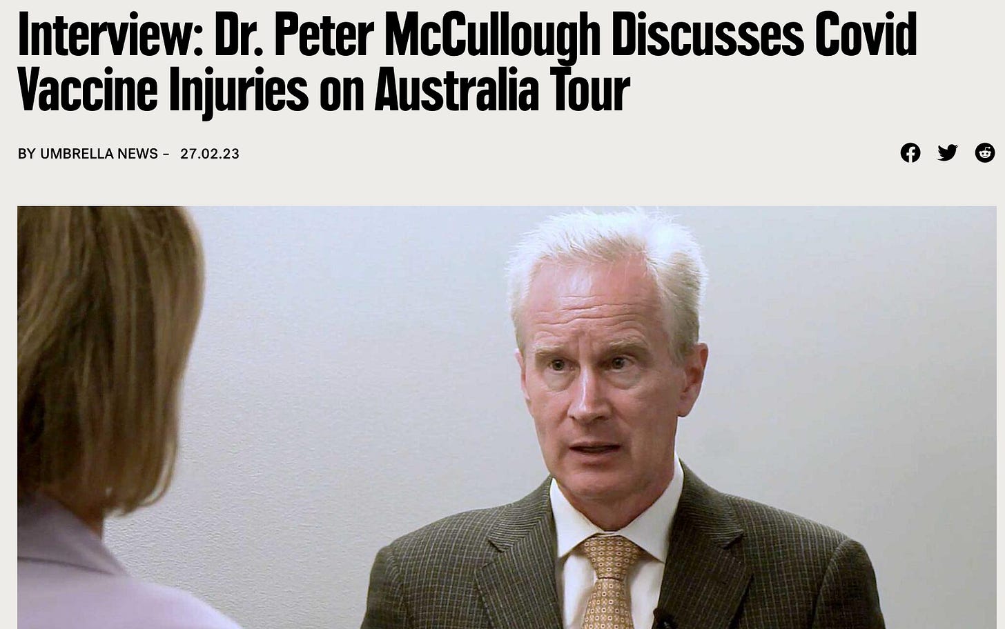 I had the privilege of interviewing Dr Peter McCullough for Umbrella News during the Melbourne leg of the Covid Vaccine Conference. Dr McCullough did not hold back, with the interview covering big topics: