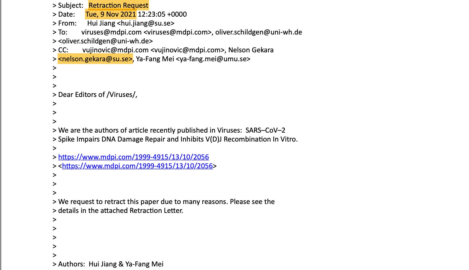 The email records show that first author Hui Jiang initially requested the retraction of his paper, in a ‘generic’ letter emailed to MDPI on 9 November 2021.