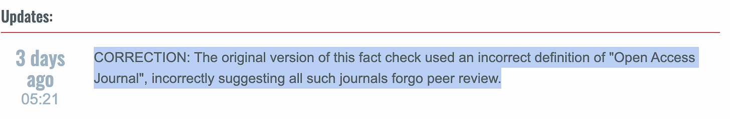 The previous version of the article was not archived before the correction was made, however I screenshotted it on 25 May 2024, as below. Dean Miller also famously called the British Medical Journal a “news blog” in a ‘fact check’ discrediting a BMJ investigation, to which a scathing response was published in the BMJ.