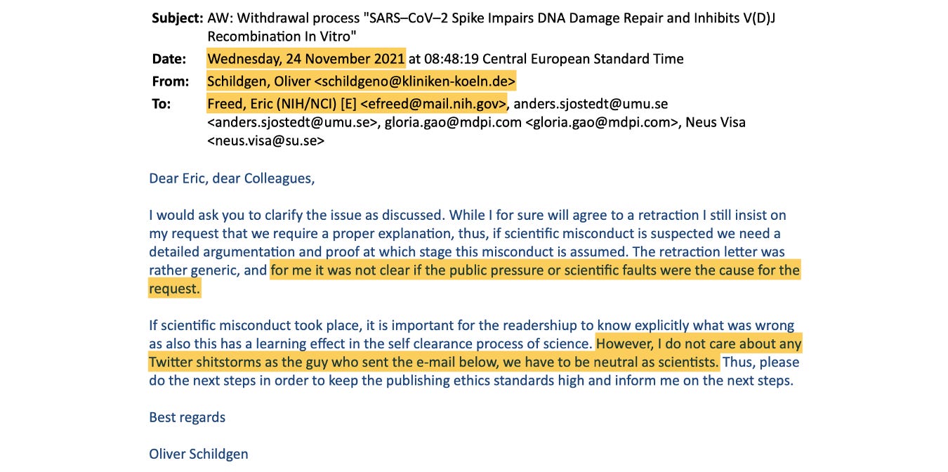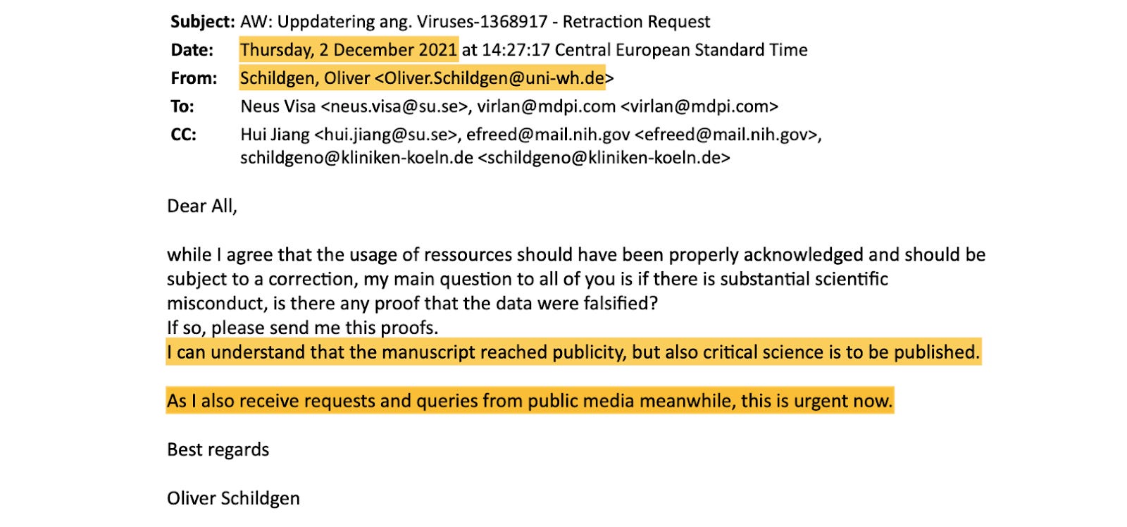 Schildgen stated that he cannot share information pertaining to communications between himself and the authors, as “this would be a scientific and legal misconduct.”