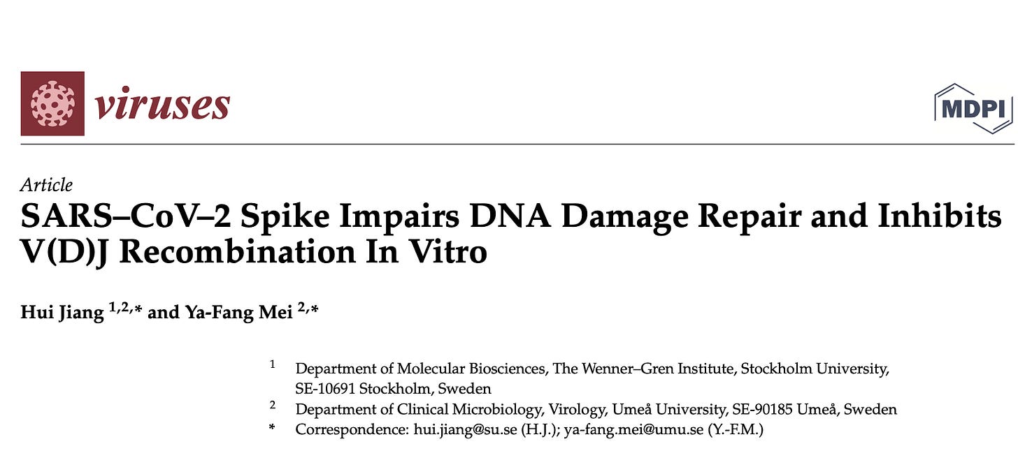 The paper, titled ‘SARS-CoV-2 Spike Impairs DNA Damage Repair and Inhibits V(D)J Recombination In Vitro’ was authored by Dr Hui Jiang of Stockholm University and Dr Ya-Fang Mei of Umeå University.