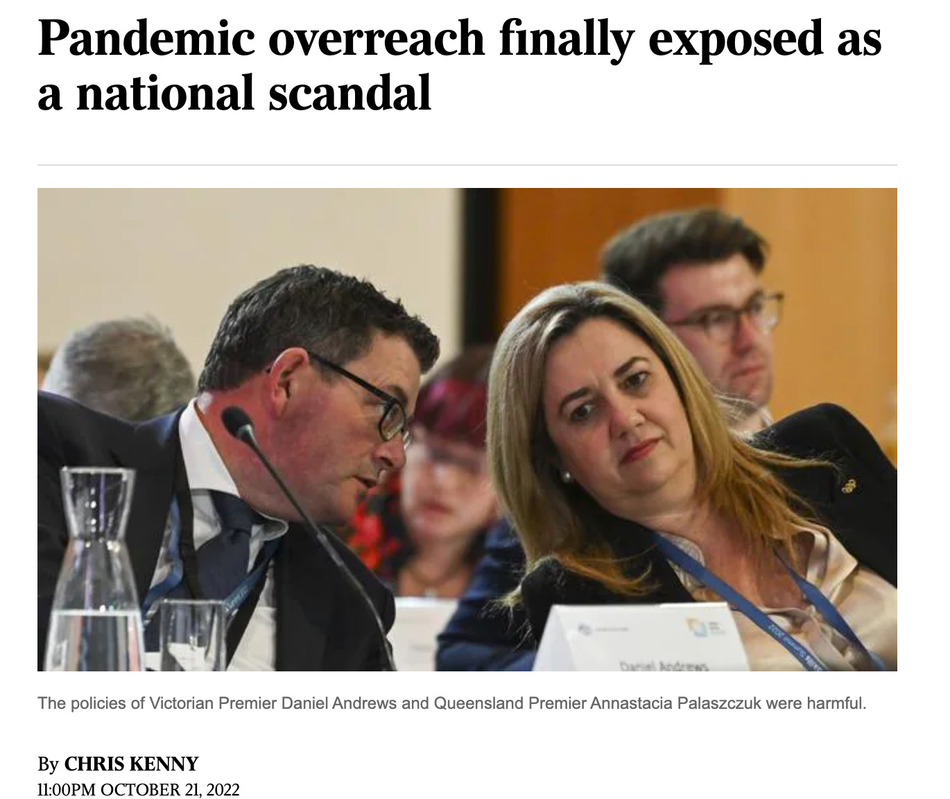 Pandemic overreach finally exposed as a national scandal, The Australian, 21 October 2022