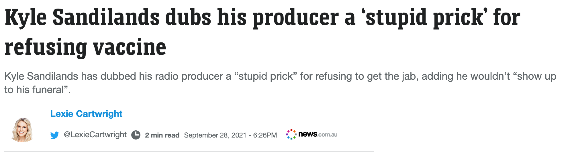 BTW I’m not being overly harsh on Sandilands - this was not a one-off error. In September of the same year, Sandilands outed the private medical status of his producer, Pedro Vitola, on live radio, calling him a “stupid prick” for not being jabbed.