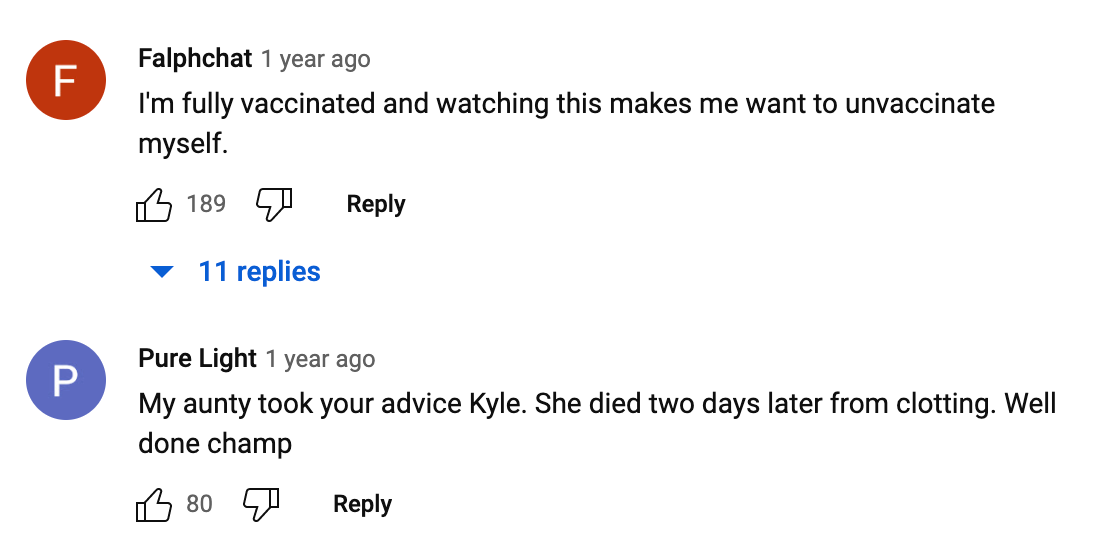 Yes Kyle, shaming and ridiculing people with serious and legitimate safety concerns is the way! Call everyone with an interest in medical transparency and freedom a nutter! Well done Kyle, shilling for government and Big Pharma really suits you.