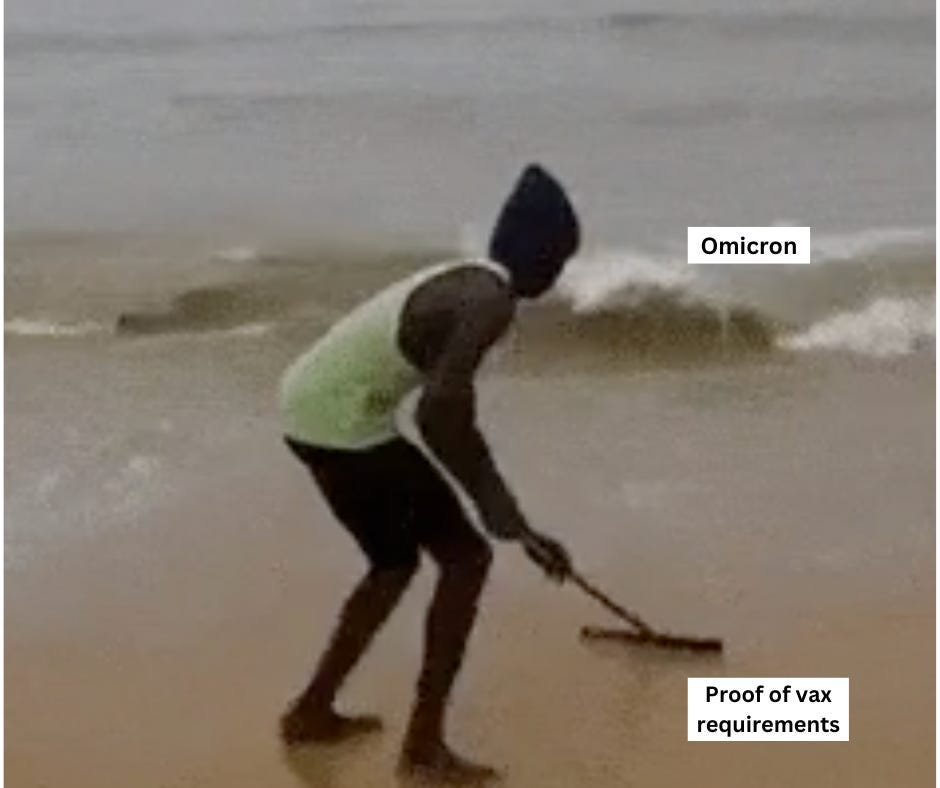 In January 2022, there was no shortage of observational data (Israel, South Africa, Gibraltar) to show that double-dose vaccination was about as effective at preventing the spread of Covid as sweeping the ocean back out to sea with a house broom. Further, the available studies on the Delta variant (which by now had been almost entirely superseded by Omicron) were mostly household studies (ie: not measuring community transmission), with weak and variable results regarding transmission. Even Pfizer CEO Albert Bourla had stated, a week prior, that “two doses, they’re not enough for Omicron.”
