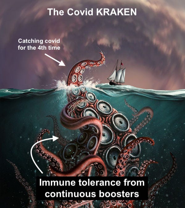 On first take, ‘The Kraken’ is a stupid made up name to usher in the fourth year of the Covid fear campaign in typically over the top style. But on further thought, The Kraken may well be the proof we have been waiting for (but hoped would never come) that Geert Vanden Bossche was right. Vaccines are driving immune-escaping variants and are causing immune imprinting and immune suppression. What are The Experts going to do about it?