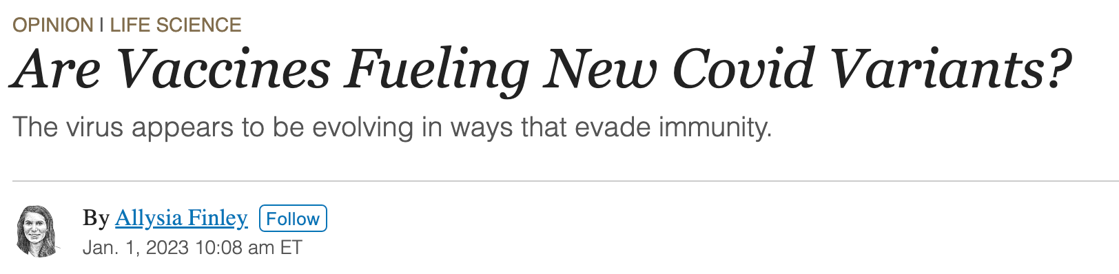 Here is a great place to segue to a Wall Street Journal article from several days ago, in which the author asks, Are Vaccines Fueling New Covid Variants?