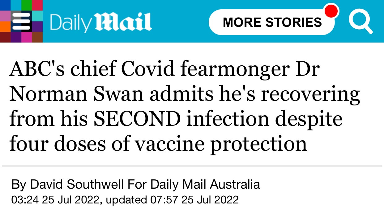 The other very effective way to drive uptake is vaccine mandates, which Australian state and territory leaders wielded with iron fist while the myth of transmission prevention still had legs. Today, that myth hangs by a thread thanks to headlines like this: