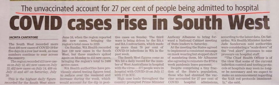 It is perhaps encouraging that WA Health and the like are resorting to such underhanded tactics in their handling and presentation of Covid data. It signals that the house of cards may well be about to collapse. And the sooner we get to the truth of things, the sooner we can commando crawl our way out of this hot mess.