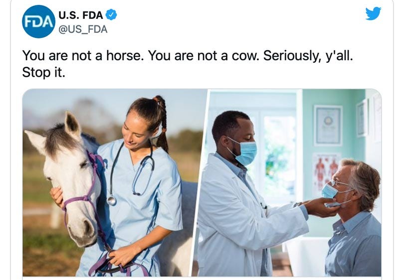 > and the US FDA even tweeted ‘you are not a horse’ to discourage use in humans