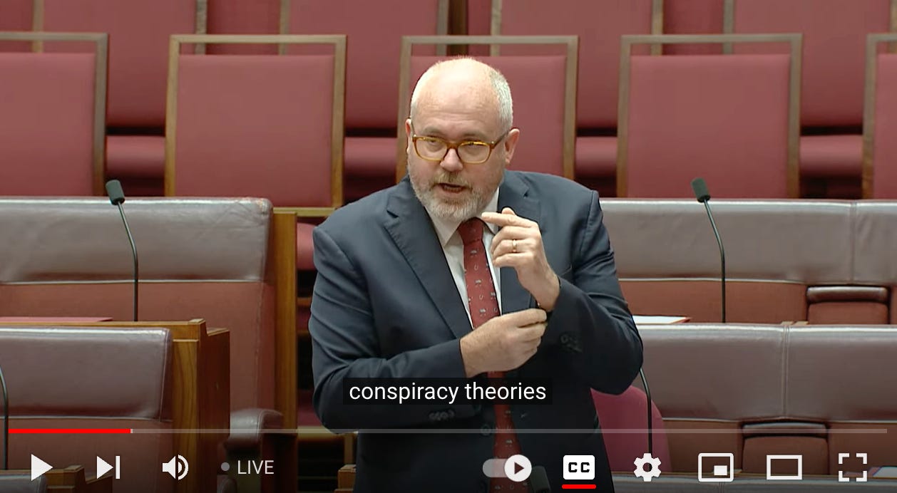 Senator Ayres used the term ‘conspiracy theories’ or ‘conspiracy theorist’ more than twenty times, likened the efforts of senators to bring about a thorough Covid inquiry to movements motivated by “anti-semitism,” and called these same senators “cranks,” and the “nastiest, extreme, kooky elements of politics.”
