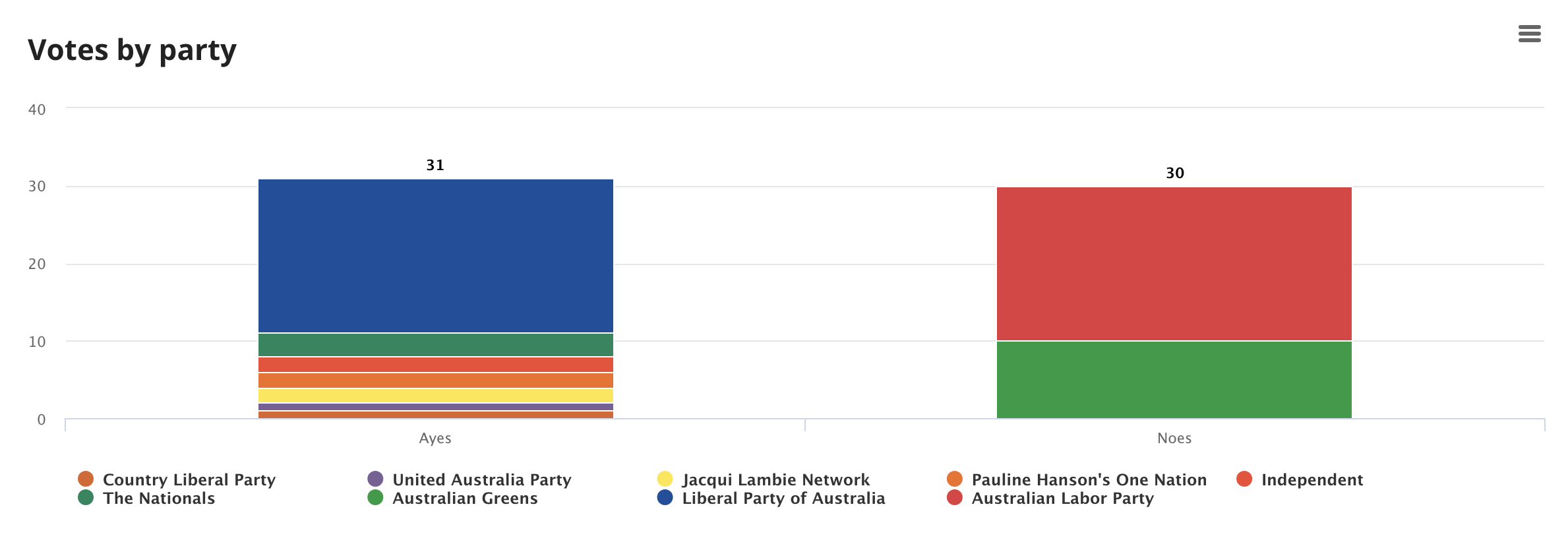 Finally... That voting map seems to act as a surrogate for level of compassion, or dodginess eh; Labor and Greens still voting against, and Jacqui Lambie finally coming around (expected better of her previously).