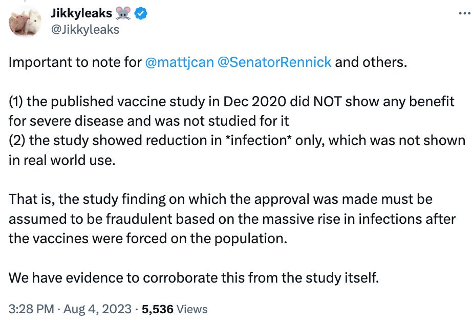I have been trying to get the TGA to answer this basic question for 2 years - ‘when the covid vaccines were provisionally approved in 2021 to PREVENT covid, and then they didn’t PREVENT covid, why weren’t they removed from circulation?’ Their document specifically and categorically states that the BioNTech vaccine was ‘provisionally approved to PREVENT sars-coV-2’ - no ifs, buts or maybes….