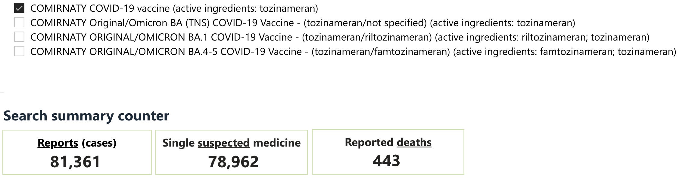 This is same the product that currently has 81, 361 reported adverse events in DAEN (Australia’s VAERS or Yellow Card database). 443 of these entries are reported deaths, one of whom is Amy Sedgewick, who died at 23 years old after suffering a ‘catastrophic reaction’ to her Pfizer vaccinations.