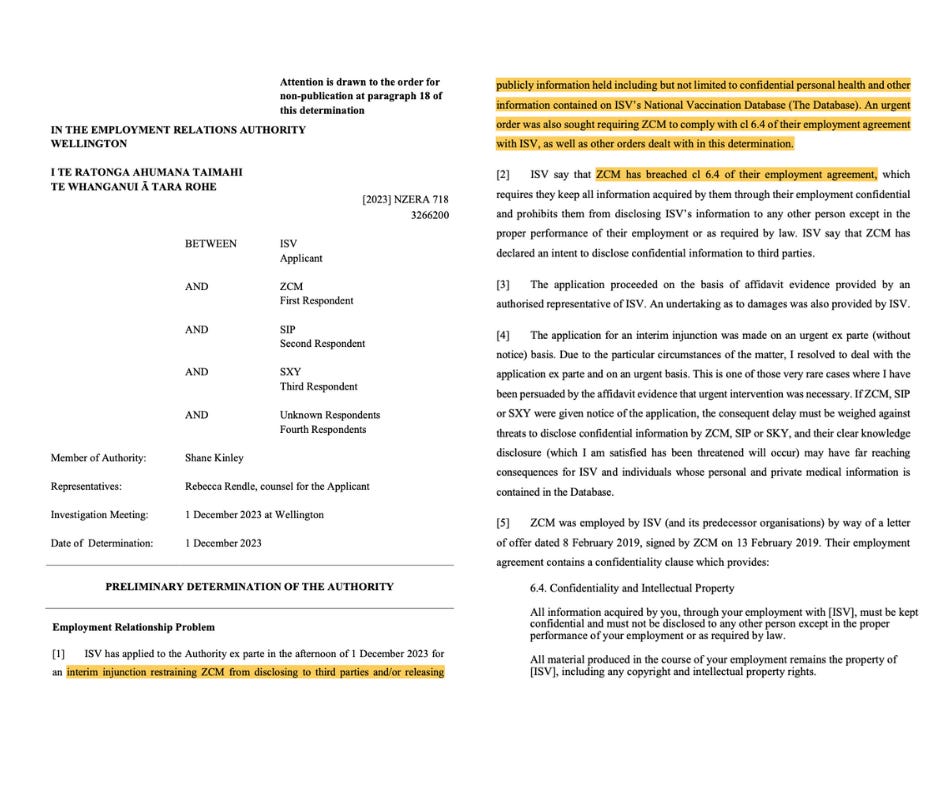 The injunction was awarded by the Employment Relations Authority, which Voices For Freedom NZ Head of Legal, Katie Ashby-Koppens, suggests has “acted outside its remit” and therefore does not have the power to make such orders against third parties or in other jurisdictions.