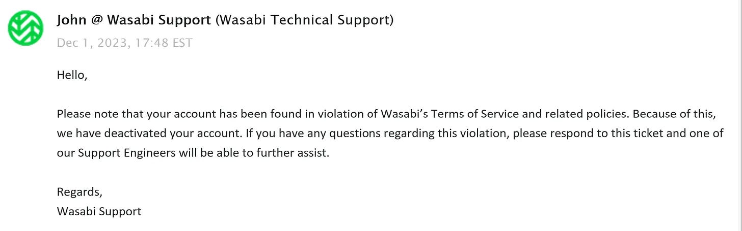 On 2 December, Kirsch reported that the site where he was hosting the NZ whisteblower data, Wasabi, had turned off his account without notice, speculating that “maybe it was because the New Zealand Ministry told them to take down my site as noted in this article.”