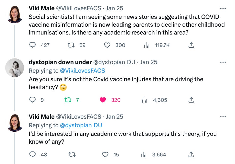 Finally, I argued my interlocutor into a corner and received an admission that any acknowledgement of any death or injury would "fuel vaccine hesitancy."