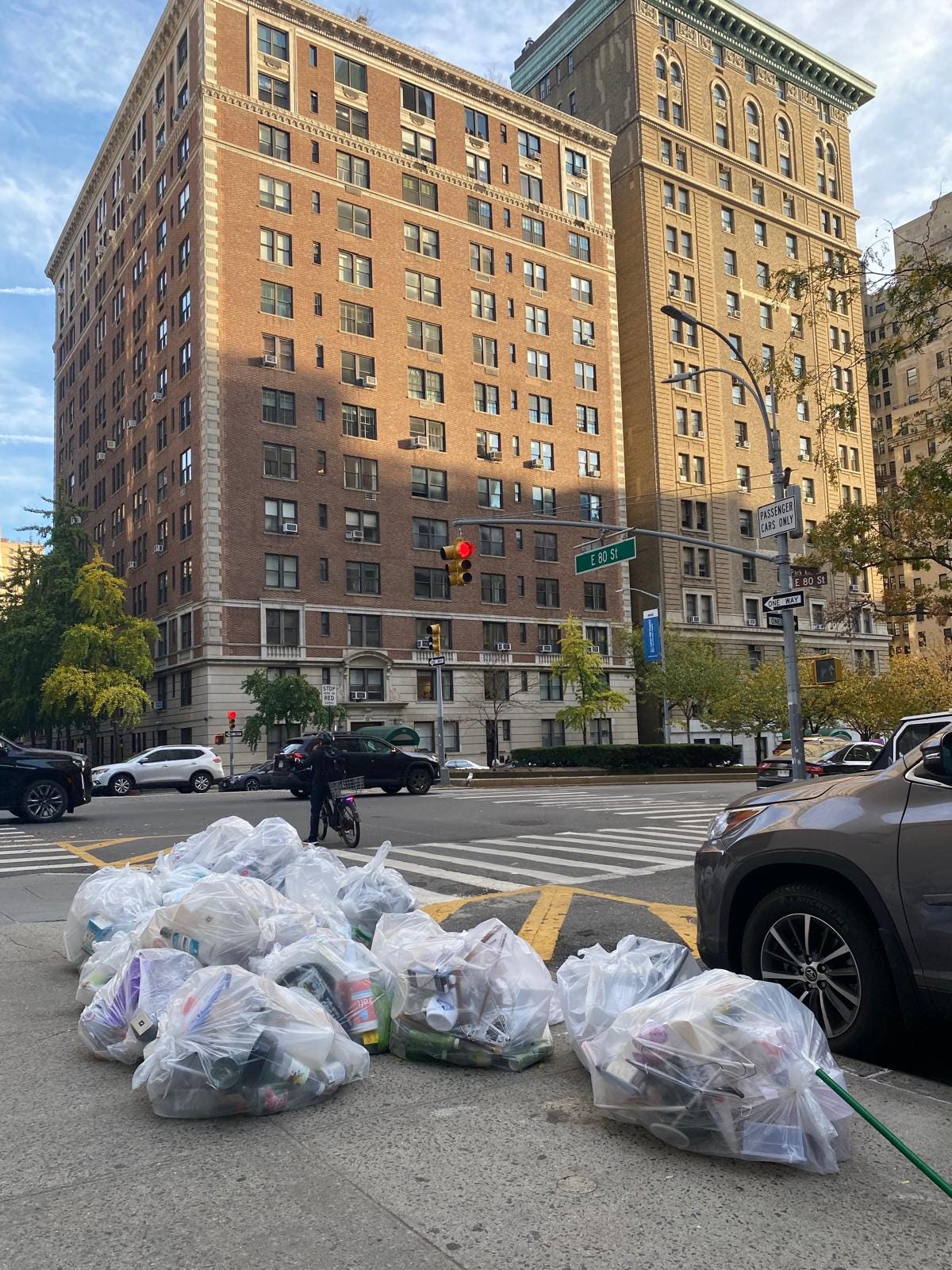 They leave trash bags in the street for collection. Makes sense, but makes the city look like a tip site.
