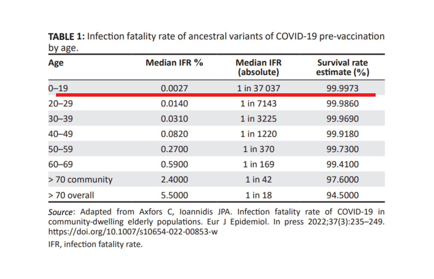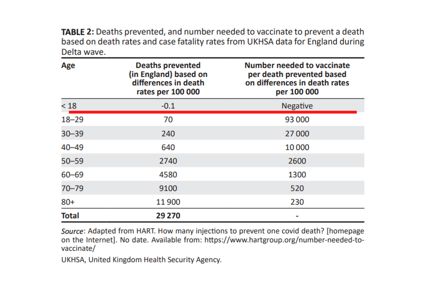 The below two tables show the Infection Fatality Rate (and therefore, the survival rate) of Covid in children, followed by the Number Needed to Vaccinate in order to prevent a Covid death. These numbers are based on official UK data and relate to the Delta wave, so the results will be generous towards the Covid vaccines, which have proven to be less effective against Omicron.
