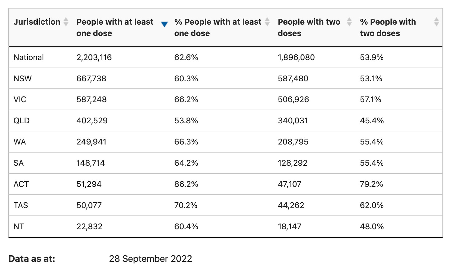 So American parents are holding back. I’m not sure that Australian parents will, though. They’ve been pretty diligent at getting their 5-11-year-old offspring jabbed, with 54% of this age group having been double vaccinated.