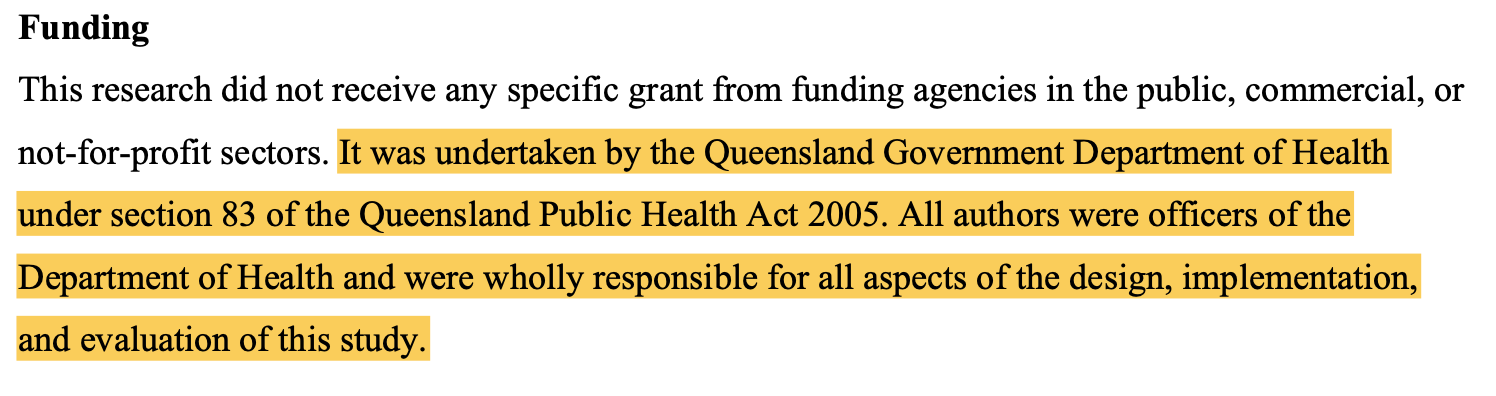 You may have heard of 'evidence-based policy making'. QLD Gov is pioneering an innovative new concept: 'policy-based evidence making'. The study should be designed with policy goals in mind. In this case, the goals are to promote more jabs, and to justify QLD Gov’s past actions (coercive vaccination policies and extreme pandemic measures). QLD Gov undertook this study themselves.