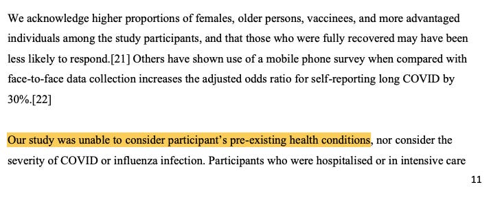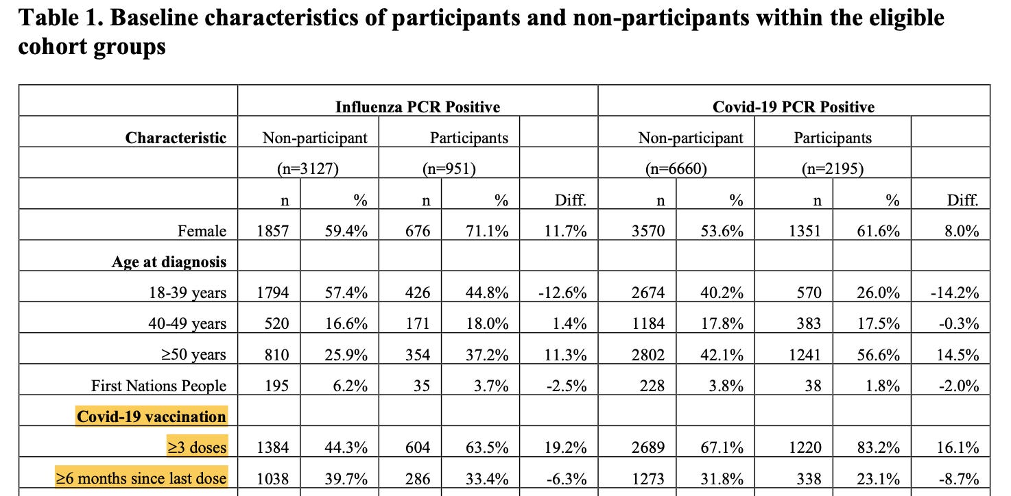 Of course, the researchers cannot claim that Covid vaccination is the reason for their findings, because they did not control for vaccinated vs. unvaccinated. Nor did they conduct any analysis of the impact of flu vaccination, other than to mention in passing that approximately 40% of QLD adults had received vaccination for influenza during the study period.