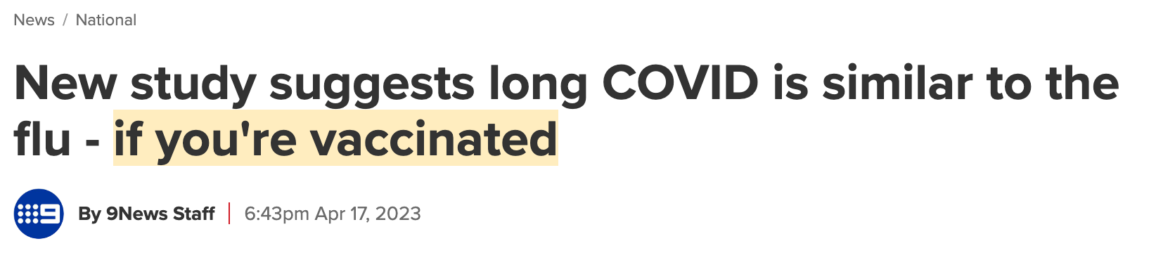 Researchers note that the QLD population is ‘highly vaccinated’ against Covid, but, unlike the politicians, who leap to the conclusion that Covid vaccination is the primary reason for the finding of equal long Covid and long flu prevalence, the researchers keep calm and refrain from overstating the evidence.