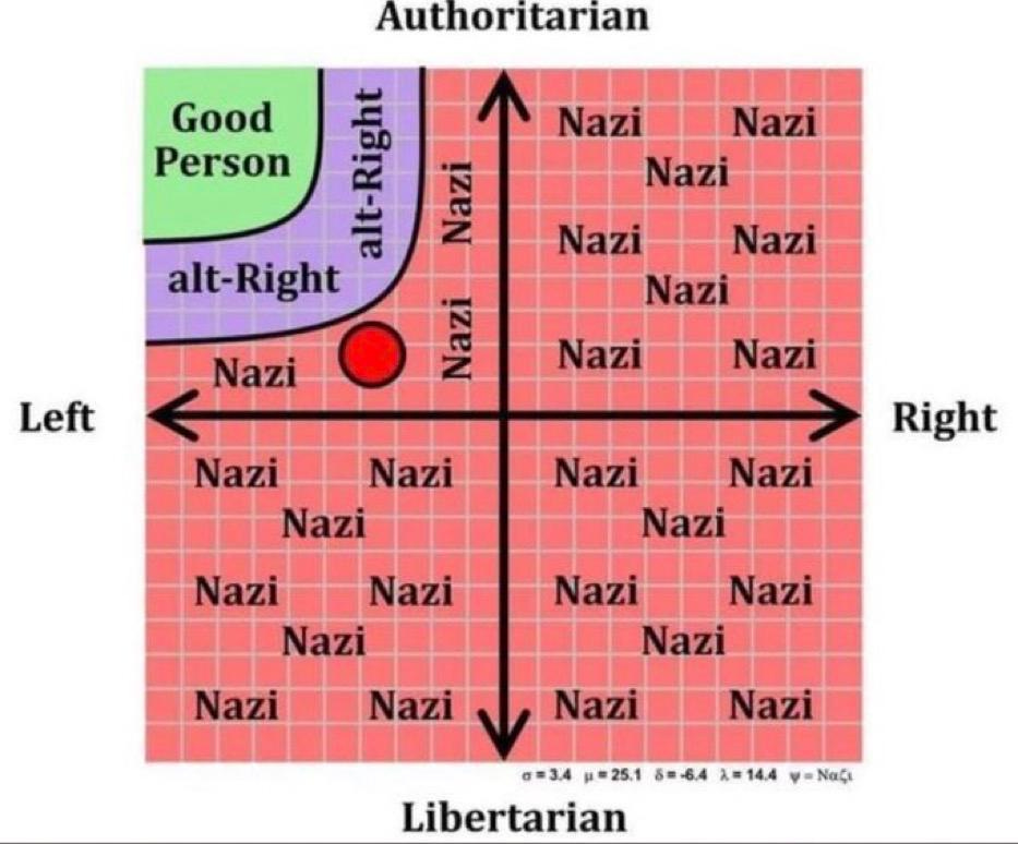 “In this new world, being “on the right” has acquired a different significance; it simply means “not being on the left.” Thus libertarians, free marketeers, the traditionally religious, gun enthusiasts, free speech advocates and even certain strains of environmentalists who are not worried about carbon dioxide all find themselves “on the right.”