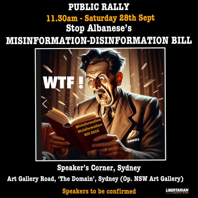 New South Wales Libertarian MP John Ruddick called it the “most insidious bill since Federation” on X today, and is organising a public rally in Sydney to oppose the bill at the end of the month.