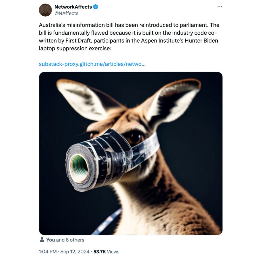 At the workshop, attendants rehearsed how to suppress the laptop story, two months before the New York Post broke the story in the heat of the 2020 Presidential election campaign. Polling suggests that at least some Democrats would have changed their vote had they known the story was true, which by the Australian misinformation bill’s definition, could constitute disinformation that caused serious harm to electoral integrity.
