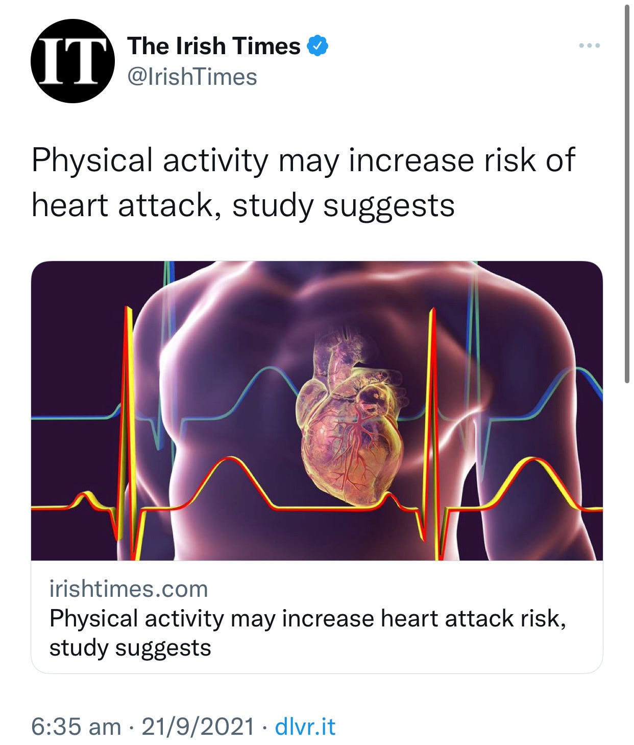 What a time to be alive! Exercise is deadly. Skipping breakfast will strike you down. And shovelling snow? Risky business. Is there anything that doesn’t cause heart disease these days? Or, in the past two years specifically, since our feeds are now populated with warnings of heart disease and early death on the daily?
