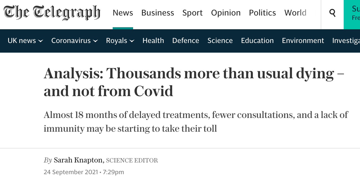 The day after I posted this, The Telegraph in the UK published this article titled, Excess deaths are on the rise - but not because of Covid.